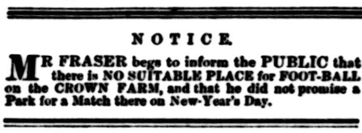 This article is intended to provide a brief insight into the important football activities of old that were enjoyed over the Yuletide season. Admittedly a time of celebration for many, we should perhaps finish with a note of sympathy for Mr Fraser who in 1871 was compelled to contact his local newspaper in Inverness to thwart attempts to organise a game on his land…